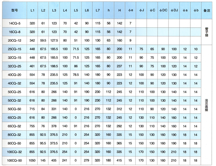 注:表中16CQ-8---100CQ-50都可配防爆電機