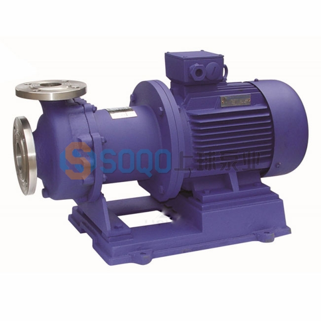 磁力驅(qū)動離心泵(簡稱磁力泵),通常由電動機(jī),磁力偶合器和耐腐蝕離心泵組成,其主要特點(diǎn)是利用磁力偶合器傳遞動力,完全無泄露,當(dāng)電動機(jī)帶動磁力偶合器和外磁鋼旋轉(zhuǎn)時,磁力線穿過間隙和隔離套,作用于內(nèi)磁鋼上,使泵轉(zhuǎn)子與電動機(jī)同步旋轉(zhuǎn),無機(jī)械接觸地傳遞扭矩。在泵軸的動力輸入端,由于液體被封閉在靜止的隔離室內(nèi),沒有動密封因而完全無泄露。泵的過流部件根據(jù)需要可分別采用304、304L、302、321、316、316L、UB6、CD4MCu、鈦合金、鎳基合金等耐腐蝕材料。CQB磁力泵是全國聯(lián)合設(shè)計(jì)組開發(fā)的新型完全無泄露耐腐蝕泵,其技術(shù)經(jīng)濟(jì)指標(biāo)與國外同類產(chǎn)品的水平相當(dāng)。