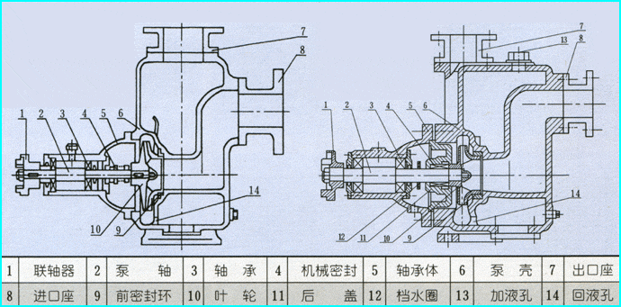 4.為使泵體內(nèi)能夠保持一定的儲(chǔ)存液,以達(dá)到較好的自吸能力和防止機(jī)械密封的干磨擦,必須使泵的進(jìn)口高于泵軸中心線。