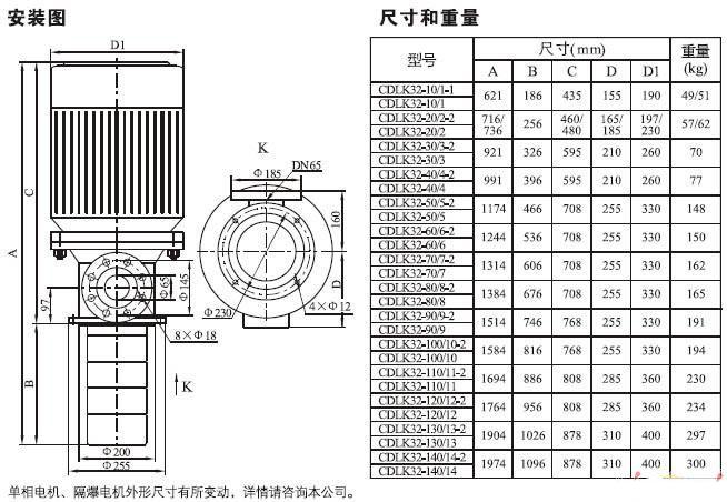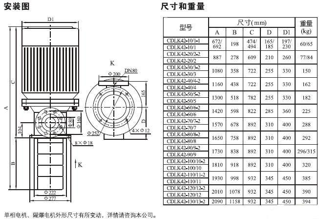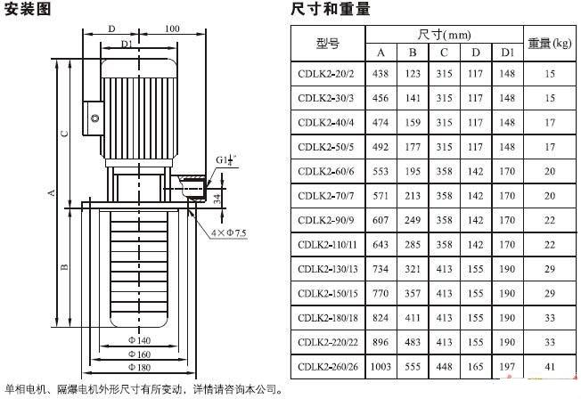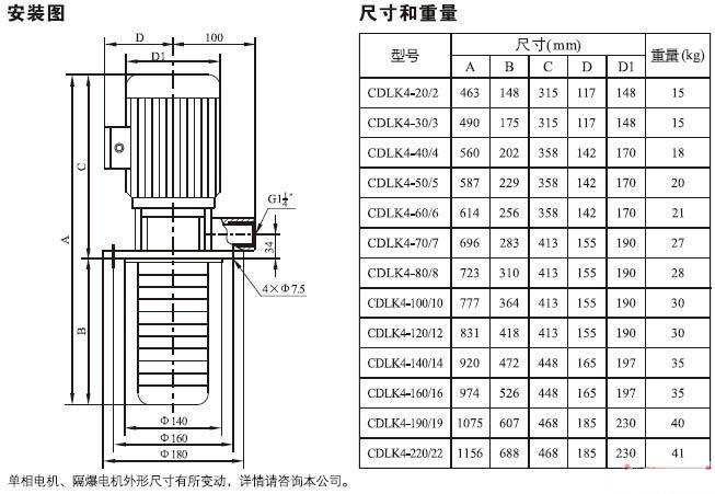 CDLK/CDLKF 為安裝標(biāo)準(zhǔn)電機(jī)的非自吸式多級(jí)離心泵,電機(jī)軸通過泵頭用聯(lián)軸器直接與泵軸聯(lián)接,泵可根據(jù)需要配置智能保護(hù)器,對(duì)泵干轉(zhuǎn)、缺相、過載等進(jìn)行有效保護(hù)。為滿足水槽或容器的安裝深度,可安裝空腔體來改變泵本身的長度,不同的級(jí)數(shù)長度見尺寸和重量表和可供產(chǎn)品范圍表。 電機(jī)為全封閉,風(fēng)冷式二級(jí)標(biāo)準(zhǔn)電機(jī)