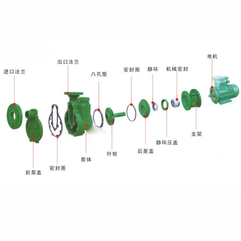 FPZ型增強(qiáng)聚丙烯自吸泵,采用聚偏氟乙烯(PVDF)、增強(qiáng)聚丙烯(RPP)一次注塑成型。機(jī)械強(qiáng)度高,耐腐蝕性能強(qiáng),結(jié)構(gòu)上有獨(dú)具一格的科學(xué)性,泵腔內(nèi)設(shè)有吸液室、儲(chǔ)液室、回液止回室、氣液分離室、回流孔。只需在第一次開機(jī)前灌注引液,以后不必重復(fù)灌注引液,吸入管安裝液下閥,工作時(shí)機(jī)械密封不需另加冷卻水冷卻,操作簡(jiǎn)便、安全無泄漏,是取代液下泵的最佳產(chǎn)品,適用于-40℃-+120℃(PVDF)和-40℃-80℃(RPP)的各種腐蝕性介質(zhì)的輸送。