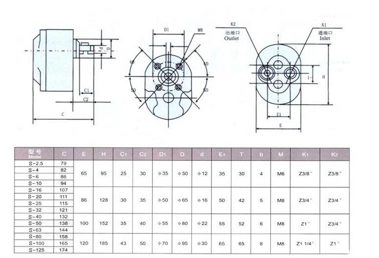 S型小型齒輪泵適用于輸送粘度為5-1000cst,溫度在60℃以下的不含顆粒雜質(zhì)的中性油液。主要用于石油加油站、商業(yè)、糧油及食品部門輸送機油、煤油、柴油等礦物油和各種植物油以及性質(zhì)類似的其它液體。 S型噴油泵適用于輸送噴射粘度5-1000cst,溫度在100℃以下的重油、柴油等各種燃油。主要用于各類燃油鍋爐、爐窯等爐前噴射燃油之用。 S型耐酸泵適用于輸送不高于120℃,不含顆粒雜質(zhì)的硫酸30%、硝酸40%,任何濃度的鹽酸、氫氟酸、磷酸、氨水、胺類、過氧化氫、氫氧化鈉、氫氧化鉀及各種酸溶液以及性質(zhì)類似的其它液體。