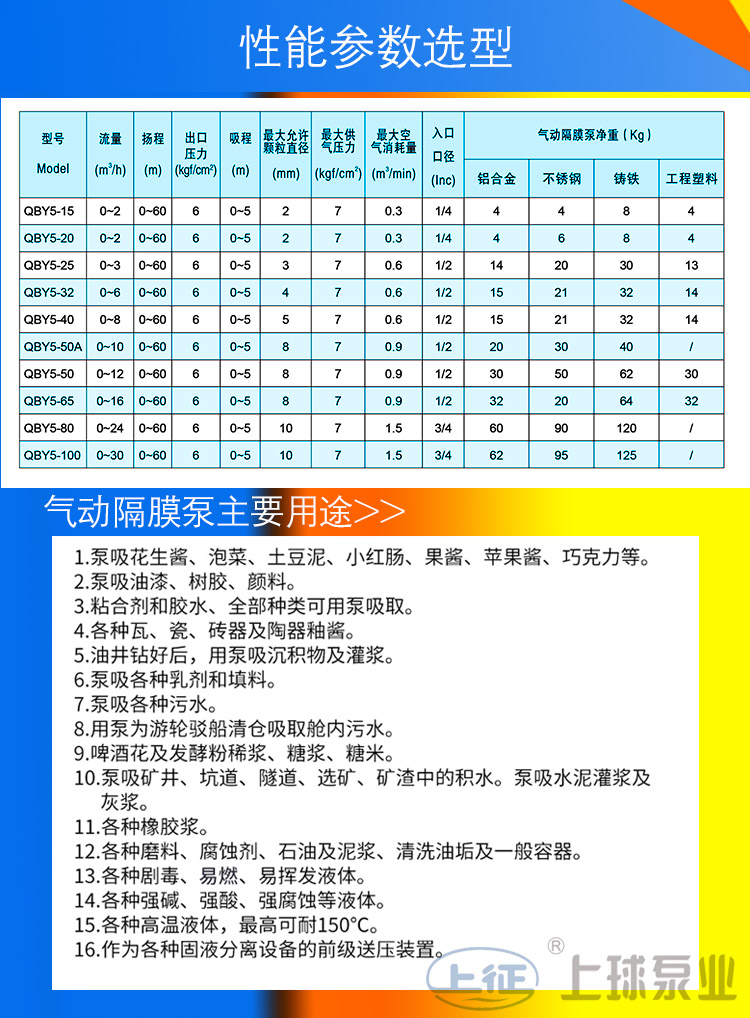 QBY5氣動(dòng)隔膜泵是我公司開發(fā)的第五代氣動(dòng)隔膜泵對美國進(jìn)口氣動(dòng)隔膜泵與國產(chǎn)氣動(dòng)隔膜泵的外形進(jìn)一步改進(jìn),機(jī)械外觀更加美完;不死機(jī),無油氣動(dòng)隔膜泵,高吸程隔膜泵,替代進(jìn)口隔膜泵,國內(nèi)氣動(dòng)隔膜泵并對性能的進(jìn)一步加強(qiáng),效率更高。歡迎選擇上球牌氣動(dòng)隔膜泵。
