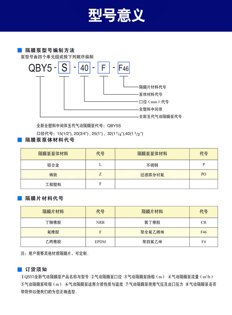 正奧公司目前已形成系列化生產(chǎn),共有八種規(guī)格直徑:φ25mm(1')、φ40mm(11/2')、φ50mm(2')、φ65mm(21/2')、φ80mm(3')、φ100mm(4')。隔膜泵根據(jù)不同液體介質(zhì)分別采用丁晴橡膠、氯丁橡膠、氟橡膠、聚四氟乙烯隔膜。以滿足不同用戶的需要。