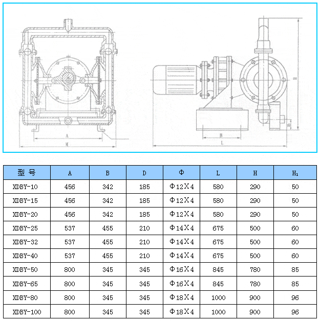 上球公司的XDBY型電動(dòng)隔膜泵,采用XLD系列擺線針輪減速機(jī)傳動(dòng)動(dòng)力,電動(dòng)隔膜泵是一種新型的泵類,近年來,由于在隔膜材質(zhì)上取得了突破性的進(jìn)展,國際上越來越多的工業(yè)化國家采用此種型式的泵,取代部份離心泵、螺桿泵,來應(yīng)用于石化、陶瓷、冶金等行業(yè),產(chǎn)品設(shè)計(jì)均參考美國ABEL公司樣機(jī),該泵適用于低壓,即出口壓力≤3kgf/cm2的場合。